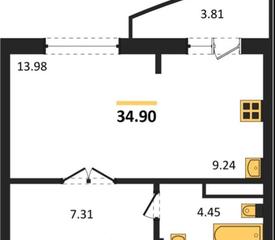 1-к квартира, 34,4