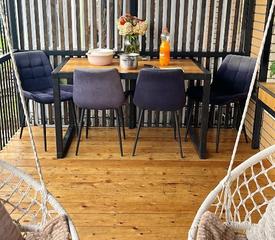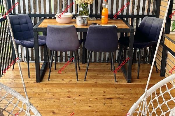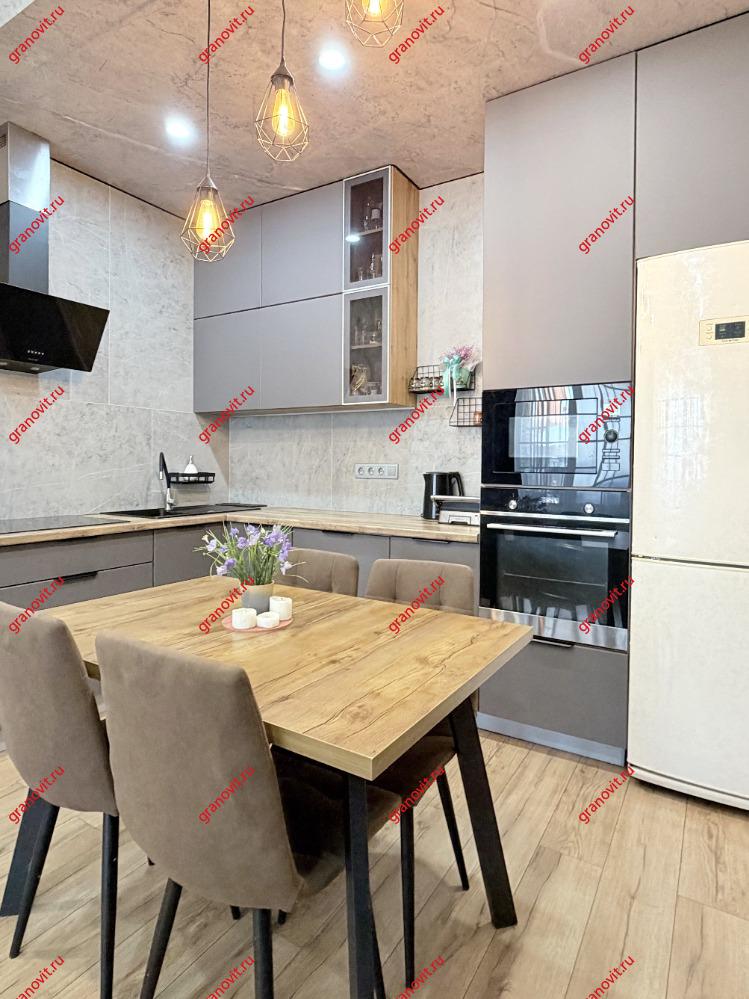 - Кухонный гарнитур с техникой, обеденный стол со стульями.
