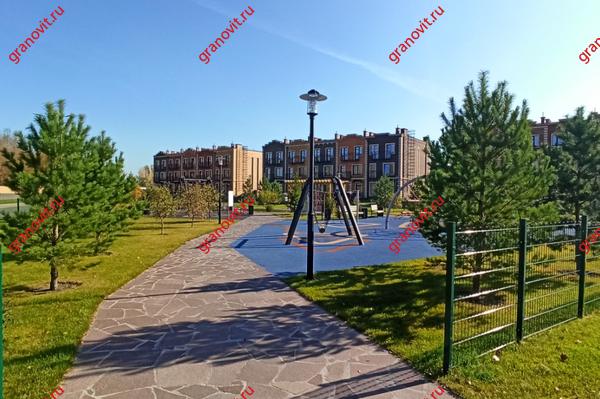- Детские и спортивные площадки с безопасным покрытием.