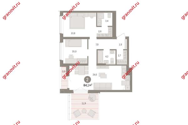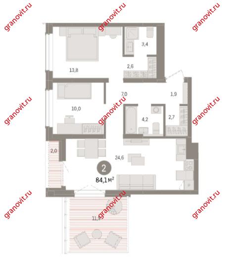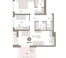 Продажа 2-к квартира, 84,1 м2, 9/9 этаж