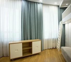 Детская — для двоих! Симметричные кровати (игровое пространство снизу) и своя учебная зона