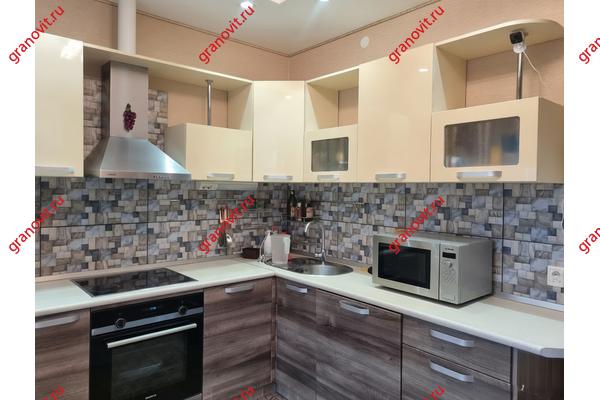 В квартире сделан ремонт с использованием натуральных материалов: дерево, плитка