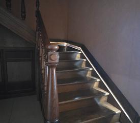 Толщина кирпичных стен 80 см, высокие потолки 3м и качественные оконные системы имеют прекрасную шумоизоляции как со сторон улицы и двора, так и соседей. На площадке всего две квартиры.