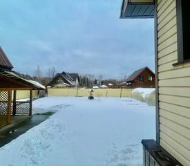 На участке — уже стоит дом, гараж и баня.