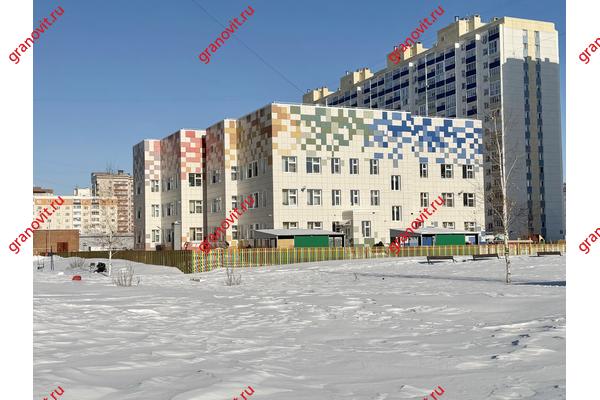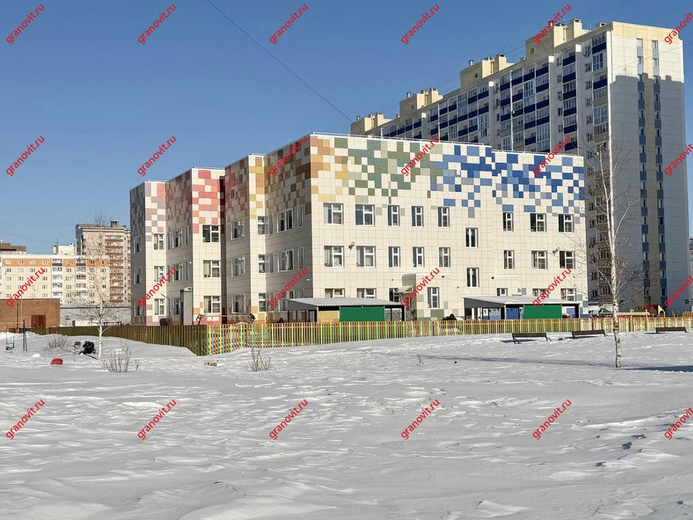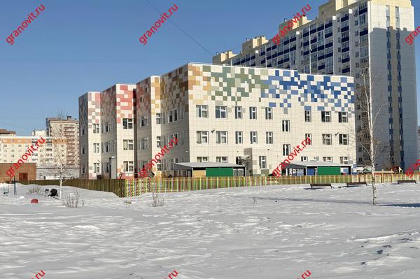 Во дворе дома детский садик «Ладушка», остановка транспорта рядом.