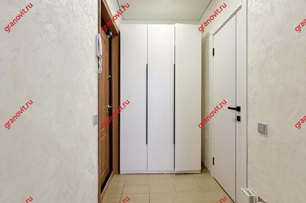 Кухонный гарнитур и шкаф в прихожей остается в квартире.